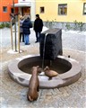 Bullermyren Borlänge Sockel i kolmårdsmarmor 230 cm hög skulptur i brons 25 cm hög. Beställare: Stora Tunabyggen AB 04