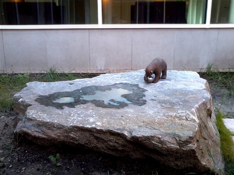 "Liten björn med boll" Brinkåsen rättspsyk. Vänersborg Totalt 12 st, material: brons ca.20-30 cm höga