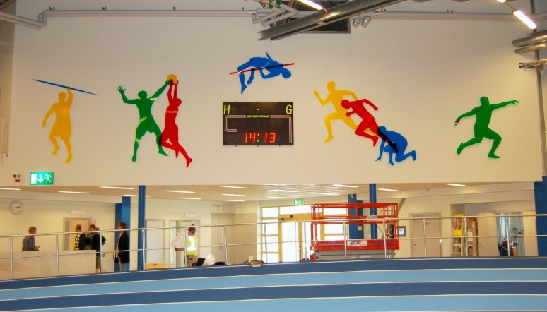 Hallen invigdes den 20 september 2008. Här ses verket "Idrottsfrisen" idé av Sofie Hagenborg